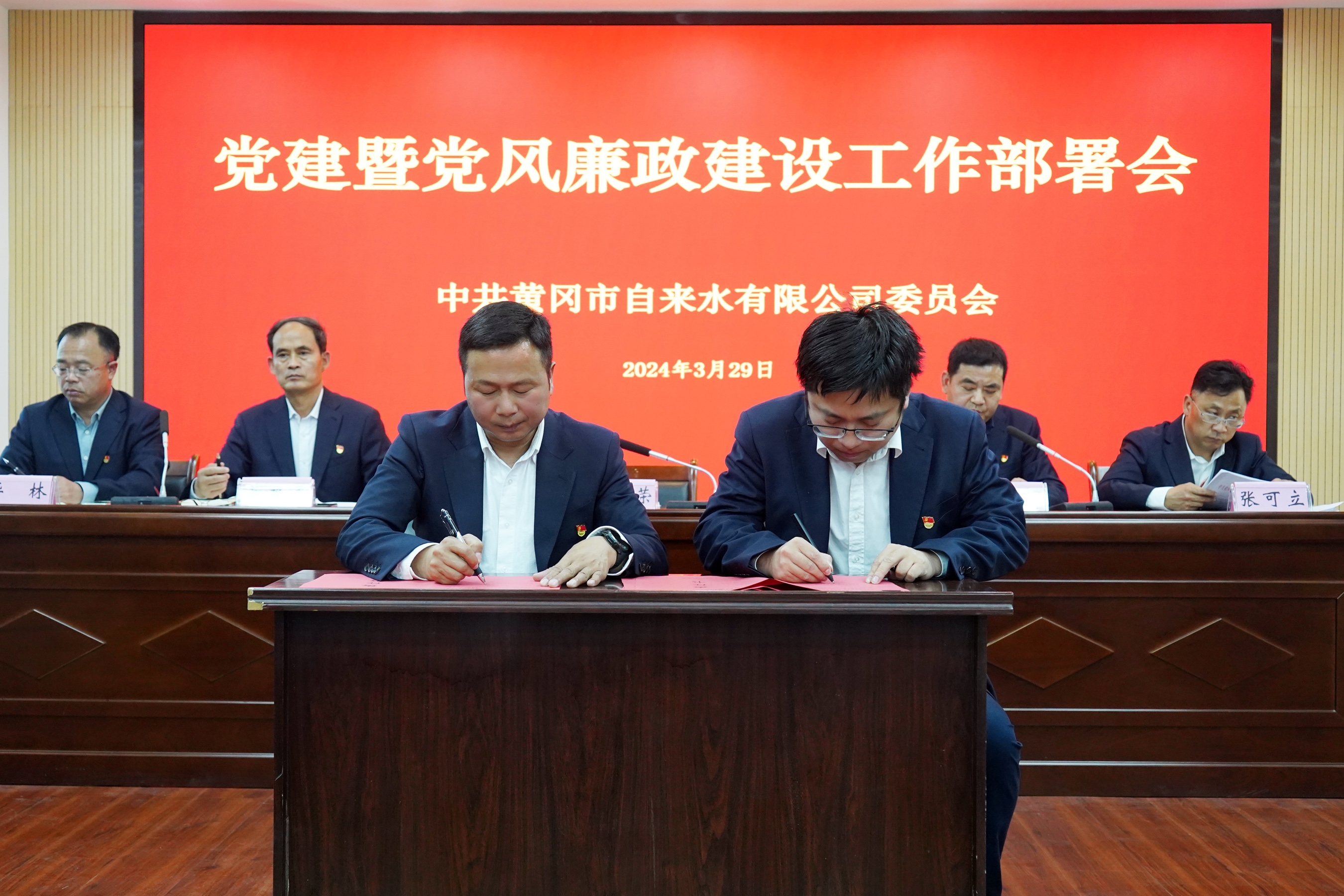 會(huì)上還對7個(gè)黨支部書記履職情況進(jìn)行了民主測評,宣讀了《黃岡市自來水有限公司2024年度黨建工作要點(diǎn)》《黃岡市自來水有限公司2024年度黨風(fēng)廉政建設(shè)工作計(jì)劃》,與各二級單位(部室)簽訂了《黨風(fēng)廉政建設(shè)責(zé)任書》,集體觀看了警示教育片《國有企業(yè)“靠企吃企”》。