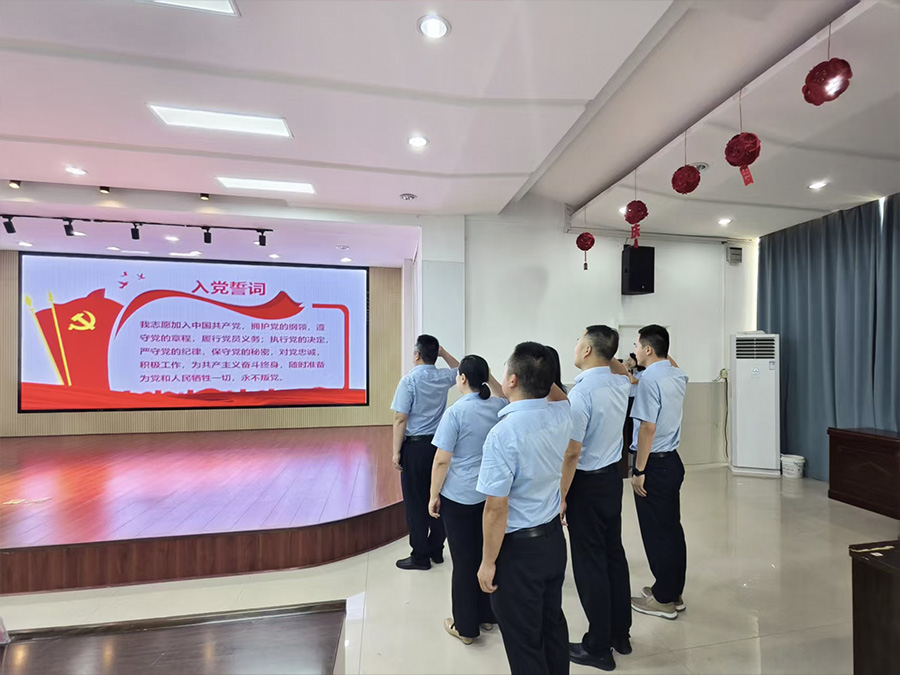 在領(lǐng)誓人胡俊同志的帶領(lǐng)下,全體黨員面向鮮艷的中國共產(chǎn)黨黨旗,高舉右拳,莊嚴(yán)宣誓:“我志愿加入中國共產(chǎn)黨……隨時準(zhǔn)備為黨和人民犧牲一切,永不叛黨。”誓言鏗鏘,信念如磐,充分表達(dá)了全體黨員對黨的無限忠誠和為共產(chǎn)主義事業(yè)奮斗終身的堅定決心。