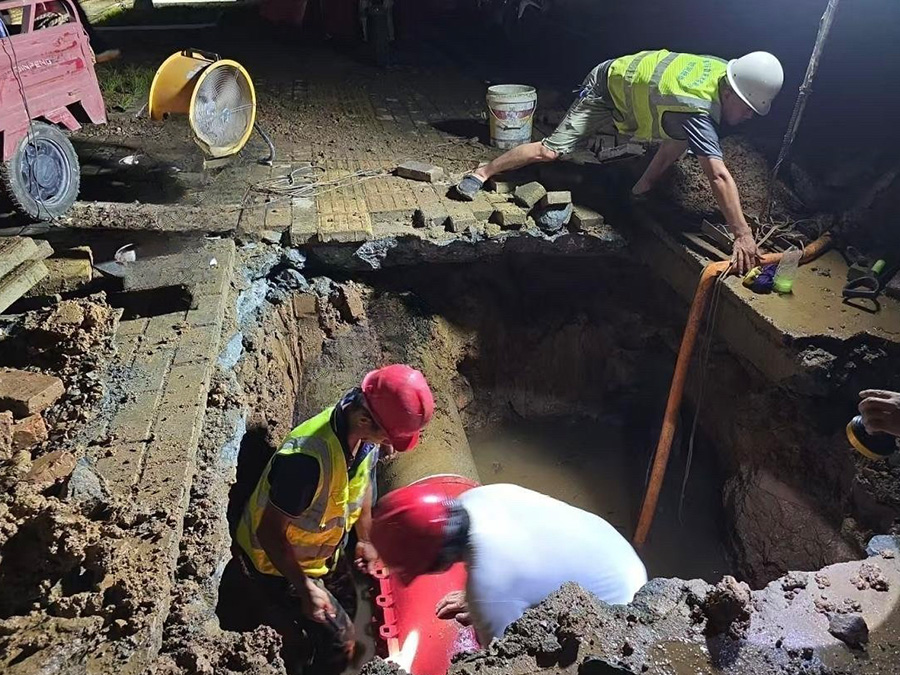 協(xié)同破題,合力跑出“加速度”。工程時(shí)間緊、任務(wù)重,且涉及道路開(kāi)挖、交通疏導(dǎo)等復(fù)雜協(xié)調(diào)工作。工作組將辦公室“搬”到一線,主動(dòng)對(duì)接城管、交管、街道社區(qū)及小區(qū)物業(yè),一周內(nèi)高效完成施工許可、交通組織方案審批及居民告知工作。施工期間,黨員先鋒崗日夜值守,實(shí)時(shí)監(jiān)測(cè)水壓變化,優(yōu)化工序銜接,最大限度降低施工影響。從方案確定到管道并網(wǎng)通水,僅用3天,跑出了為民服務(wù)的“黃岡供水速度”。