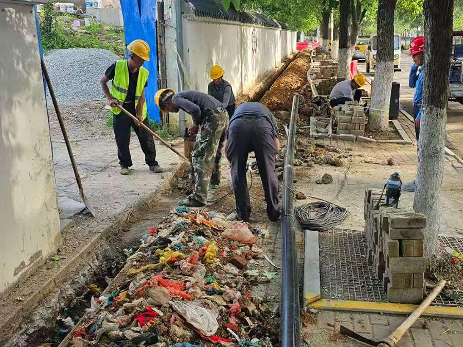 工程采用“平行作業(yè)”模式:頂管隊(duì)穿越馬路,管網(wǎng)管理所同步清理舊管,每日碰頭協(xié)調(diào)進(jìn)度。5月6日,頂管作業(yè)時(shí)發(fā)現(xiàn)老房屋地基下有不明管線,當(dāng)即改用人工開挖,多花1天確保安全。5月14日,主干管網(wǎng)貫通,0.3MPa的水壓測(cè)試讓居民代表歡呼。5月26日,七組率先通水。
