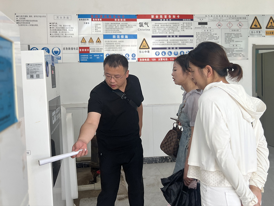 隨后,機(jī)修車間副主任王振超帶領(lǐng)大家深入加礬間、機(jī)械攪拌澄清池、加氯間等關(guān)鍵區(qū)域,詳細(xì)解析了二水廠生產(chǎn)工藝流程圖,他針對(duì)各工序操作標(biāo)準(zhǔn)與要求進(jìn)行現(xiàn)場(chǎng)教學(xué),從設(shè)備日常維護(hù)監(jiān)測(cè)到應(yīng)急處置流程,全方位提升職工突發(fā)狀況應(yīng)對(duì)能力。同時(shí)強(qiáng)調(diào)需時(shí)刻保持高度警覺,嚴(yán)格規(guī)范日常匯報(bào)流程與安全規(guī)章制度,確保供水系統(tǒng)安全高效運(yùn)行。