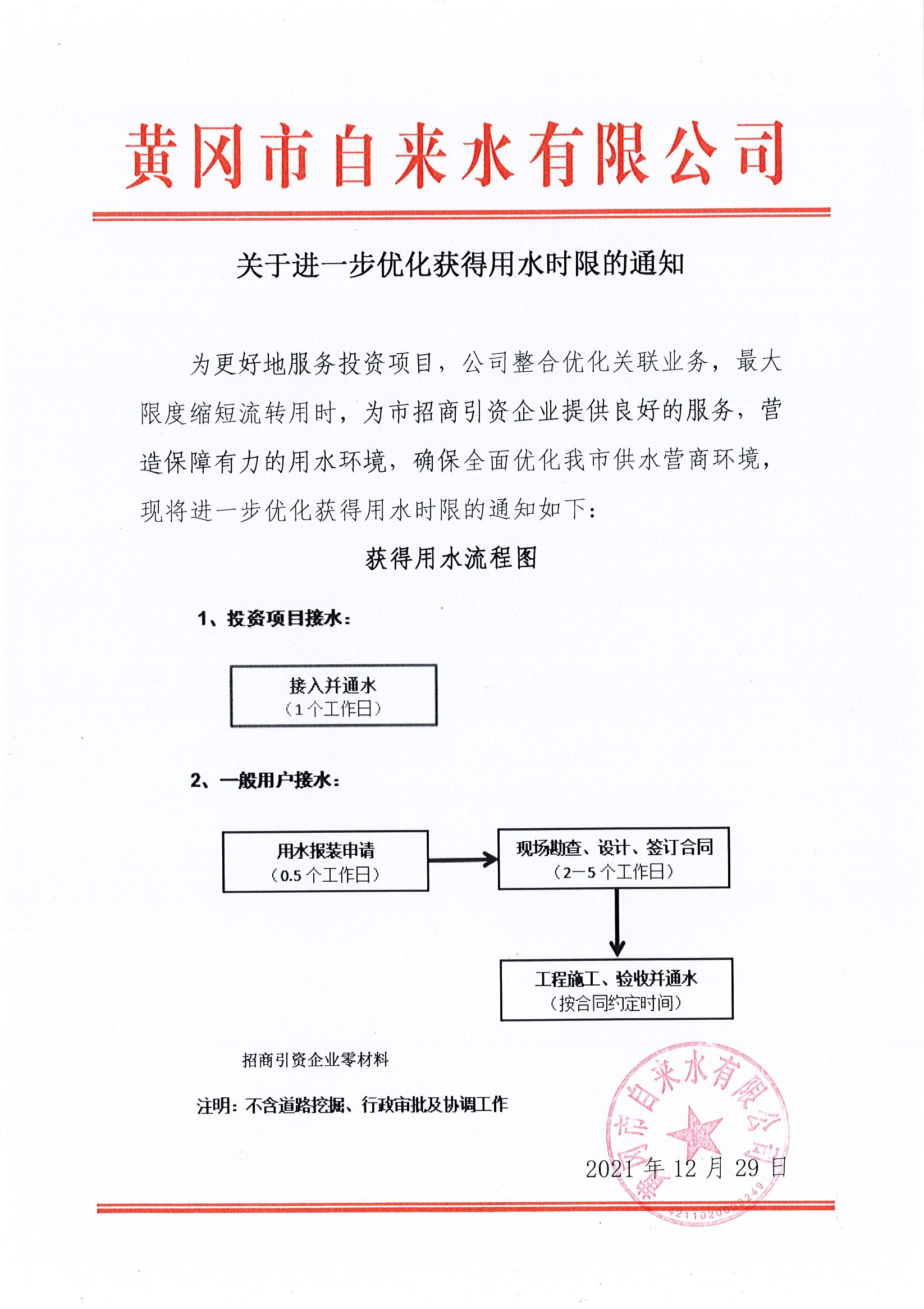關(guān)于進(jìn)一步優(yōu)化獲得用水時(shí)限的通知