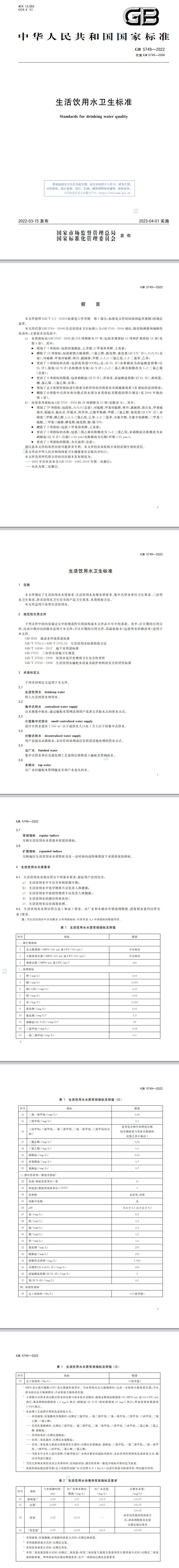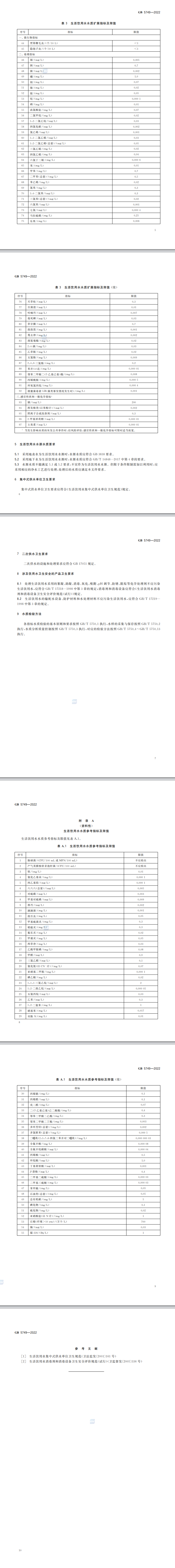 生活飲用水衛(wèi)生標(biāo)準(zhǔn)(GB 5749-2022)