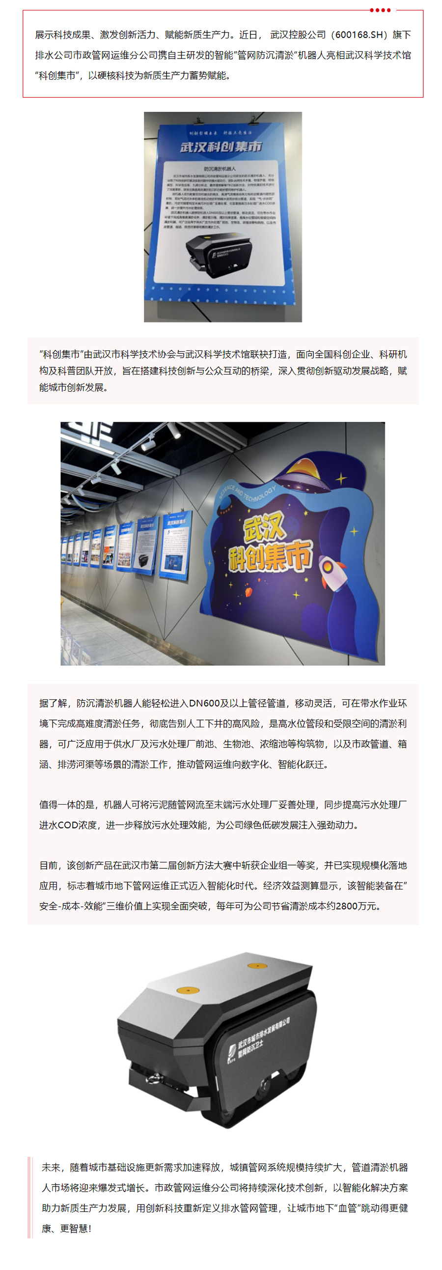 破解城市管網(wǎng)清淤難題 武漢控股公司智能機(jī)器人亮相武漢科學(xué)技術(shù)館
