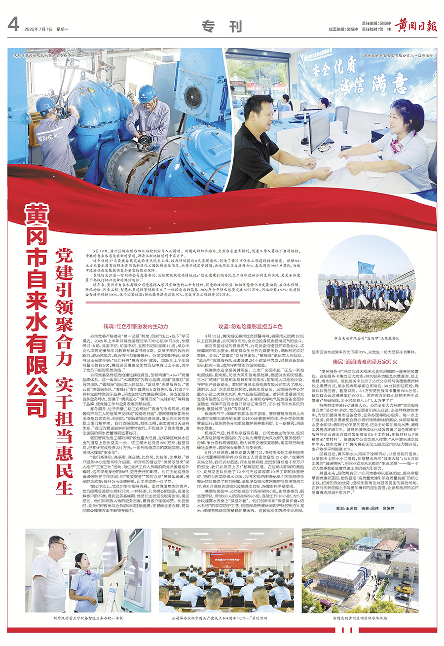 回首過往,黃岡供水人用實干詮釋初心,以擔當踐行使命。從便民卡上的小小二維碼,到智慧水務(wù)的“城市大腦”;從5萬塊水表的“溫暖棉襖”,到800立方米水箱的“生命之源”——每一個動人故事都彰顯著黨建工作的強大引領(lǐng)力。