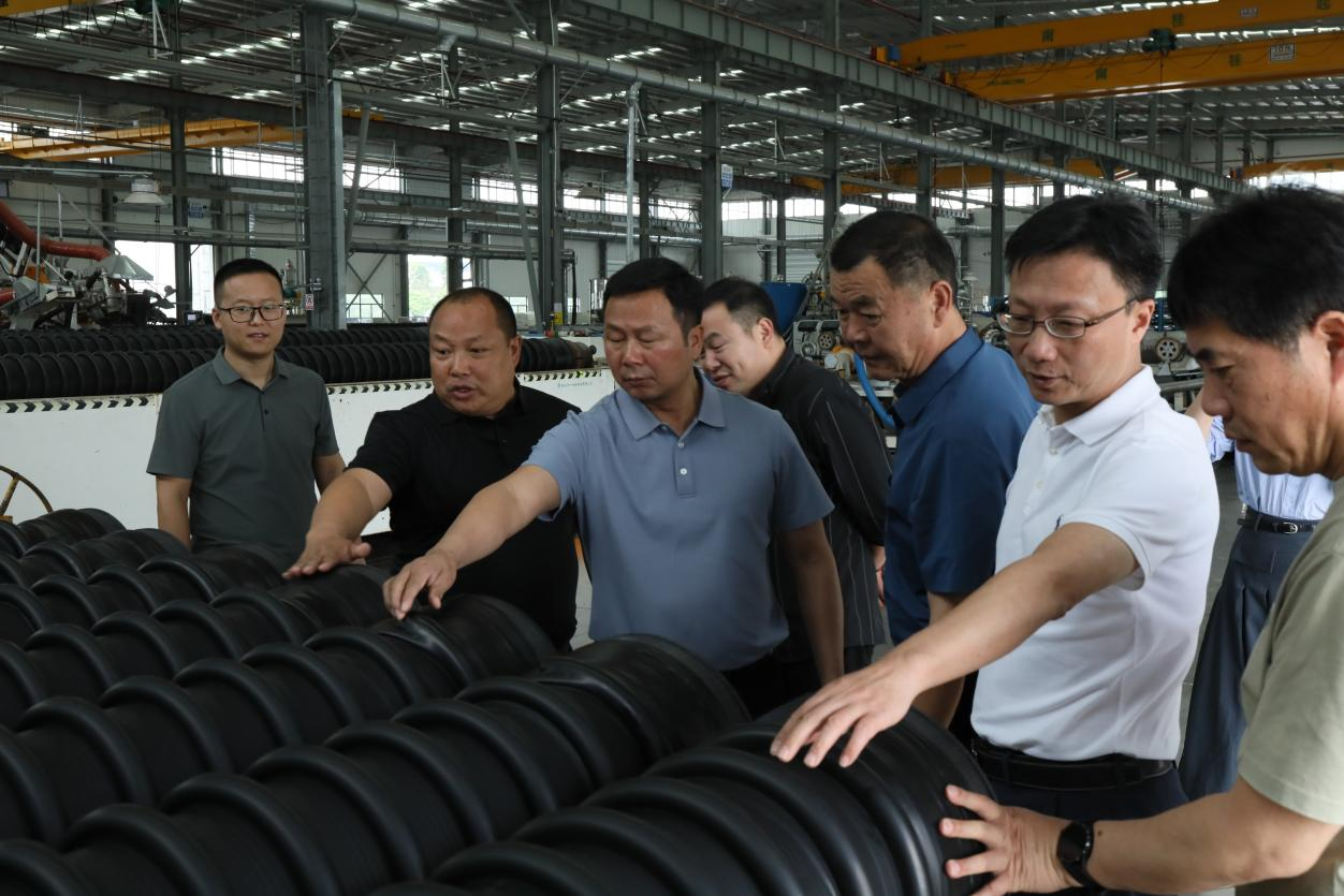 調(diào)研考察團(tuán)一行深入?yún)⒂^了日豐集團(tuán)產(chǎn)品展廳、數(shù)字化展廳以及生產(chǎn)車間,近距離觀摩管道從原材料投入到最終產(chǎn)品產(chǎn)出的全過程,詳細(xì)了解日豐集團(tuán)的企業(yè)文化以及智慧水務(wù)等各大板塊業(yè)務(wù)。座談會上,日豐新材總經(jīng)理韓紅明詳細(xì)介紹了日豐的發(fā)展歷程、創(chuàng)新產(chǎn)品、售后服務(wù)體系以及營銷策略。雙方就產(chǎn)品、研發(fā)、服務(wù)、黃岡市政管網(wǎng)建設(shè)等關(guān)鍵問題展開探討和交流互動,剖析了當(dāng)前的行業(yè)發(fā)展趨勢,共同探尋合作的新機遇。