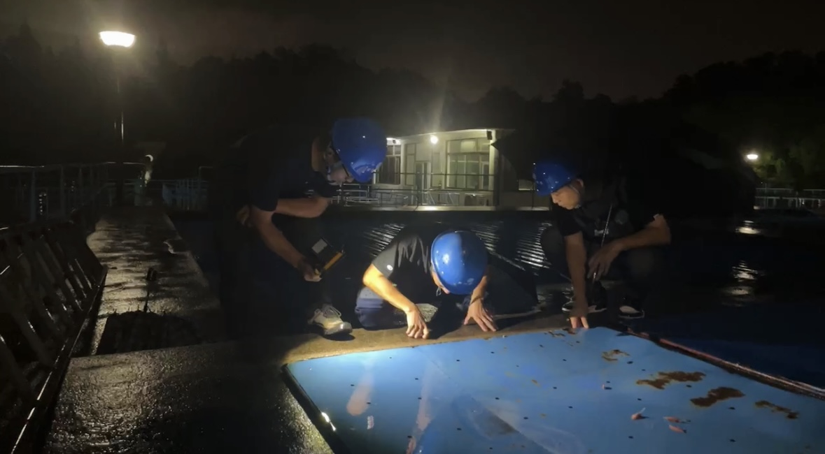 當晚,公司黨委書記、執(zhí)行董事、總經(jīng)理段欣榮帶領相關人員,頂著大雨連夜對二水廠、三水廠廠區(qū)防雨防澇工作進行現(xiàn)地巡查,重點檢查取水浮船的錨固,排查廠區(qū)排水系統(tǒng)的通暢,泵房排水設備的運行和備用,并對取水口架空電力線路、廠區(qū)排澇系統(tǒng)進行了巡查,要求密切關注水質(zhì)變化。