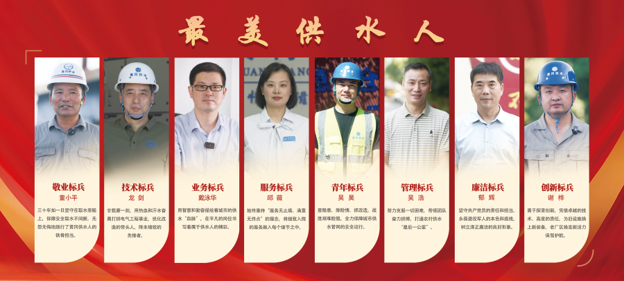 5月初,最美供水人評選活動啟動以來,評委會著眼黨性品格、聚焦供水一線、突出崗位貢獻(xiàn)的原則,經(jīng)單位推薦、組織投票、綜合審定、公開公示,最終推選出敬業(yè)標(biāo)兵、技術(shù)標(biāo)兵、業(yè)務(wù)標(biāo)兵、服務(wù)標(biāo)兵、青年標(biāo)兵、管理標(biāo)兵、廉潔標(biāo)兵、創(chuàng)新標(biāo)兵等8名“最美供水人”。他們的事跡具有強(qiáng)烈的時(shí)代性和感召性,通過深入開展學(xué)習(xí)宣傳活動,號召全公司以“最美”為榜樣,大力弘揚(yáng)最美精神,激勵爭當(dāng)時(shí)代先鋒。