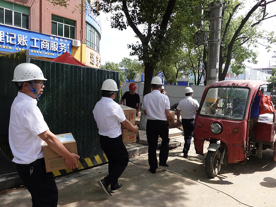 啟動(dòng)儀式結(jié)束后,段欣榮陪同胡利華、潘霞等領(lǐng)導(dǎo)一行赴供水施工一線,將“清涼”與關(guān)懷送到奮戰(zhàn)在高溫一線的工人手中。在施工現(xiàn)場(chǎng),領(lǐng)導(dǎo)們?cè)敿?xì)了解了工程進(jìn)度和員工的工作強(qiáng)度,親手將防暑物資送到每一位工人手中,并反復(fù)叮囑大家務(wù)必注意防暑降溫、勞逸結(jié)合,在確保施工安全與質(zhì)量的前提下,合理安排作業(yè)時(shí)間。